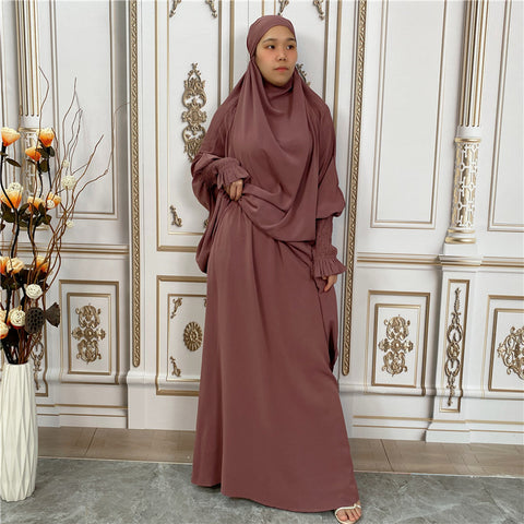 6608#10 Kleure Nuutste Premium Nida Abaya Twee-stuk Frill Elastiese Manchet Jilbab Gebed Stel