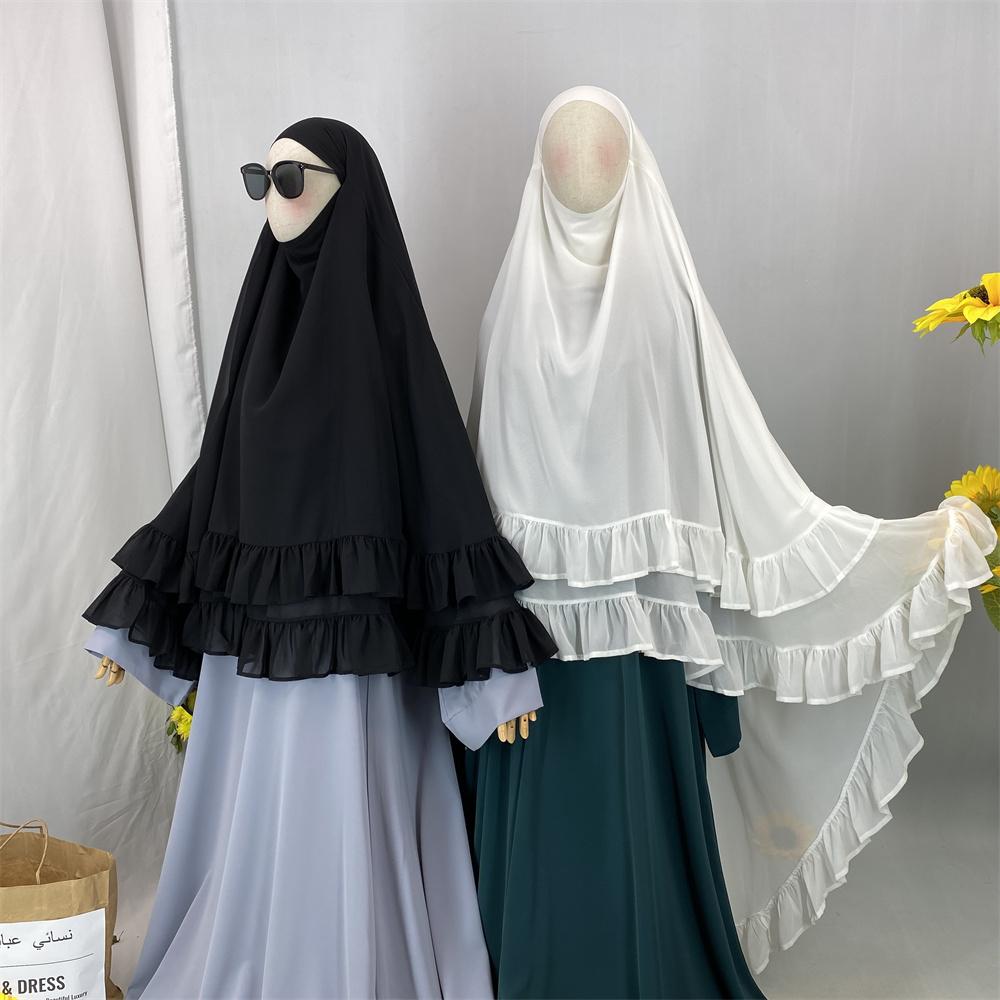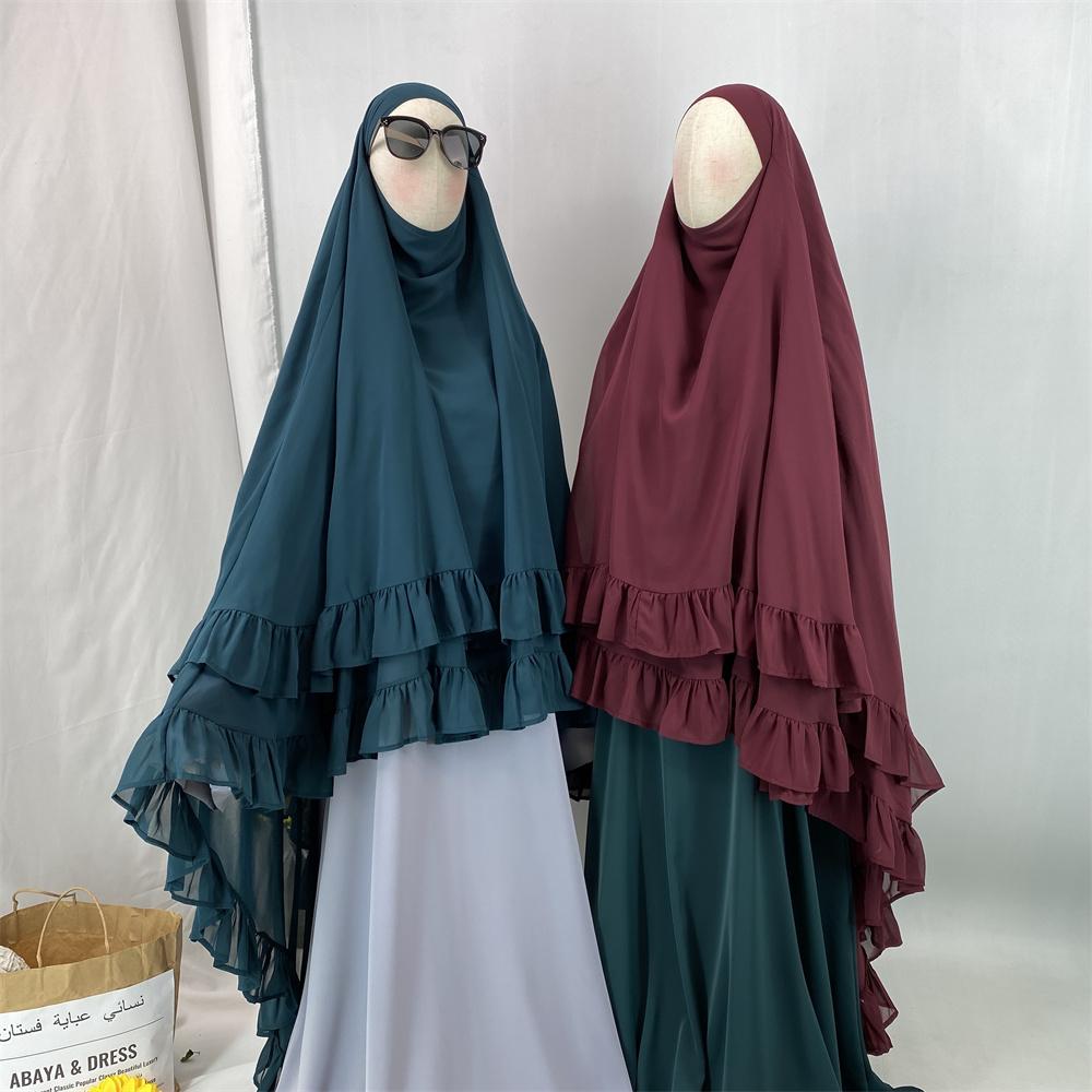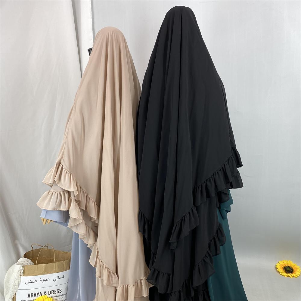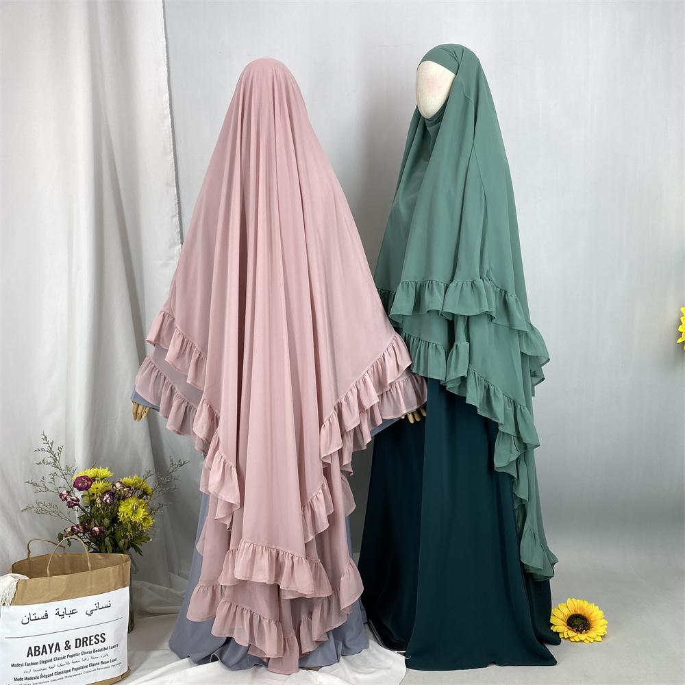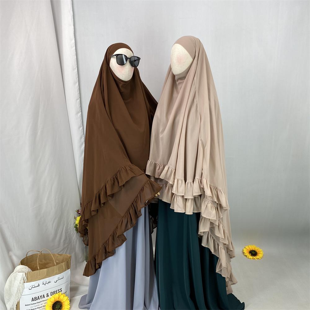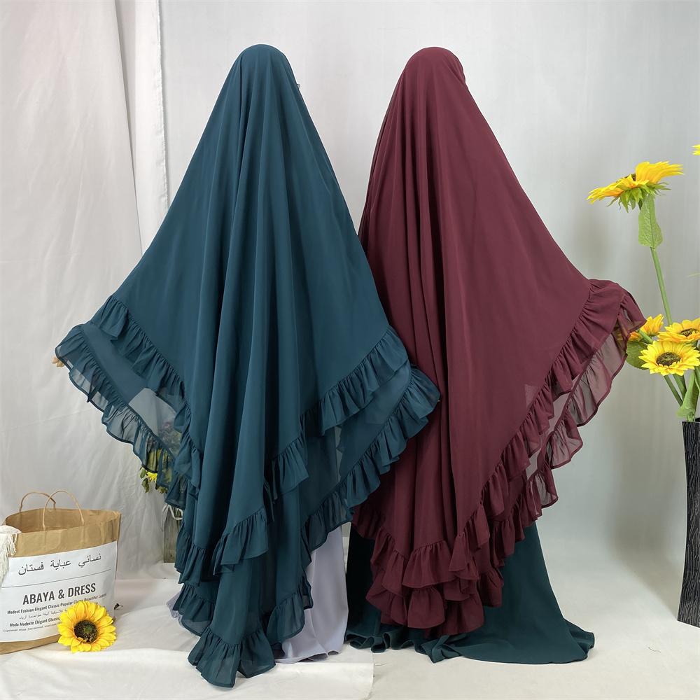 2359# Elegant Extra Long Two Layers Chiffon Khimar Hijab With End Ruffles Multi Colors For Muslim Women Daily Prayer 2025 Ramadan