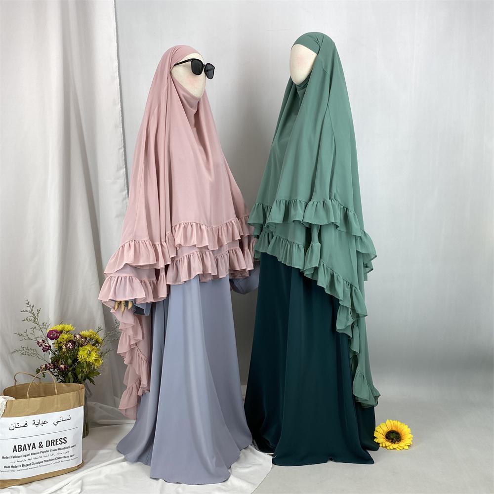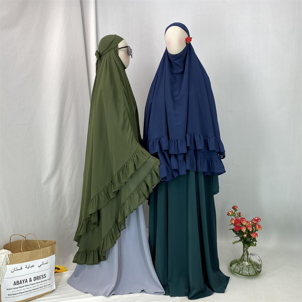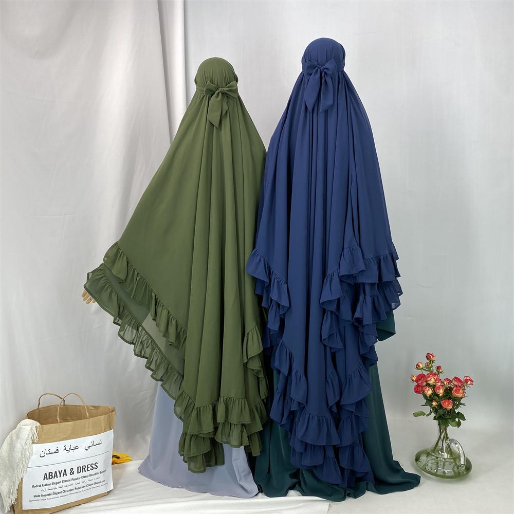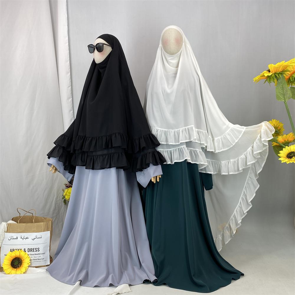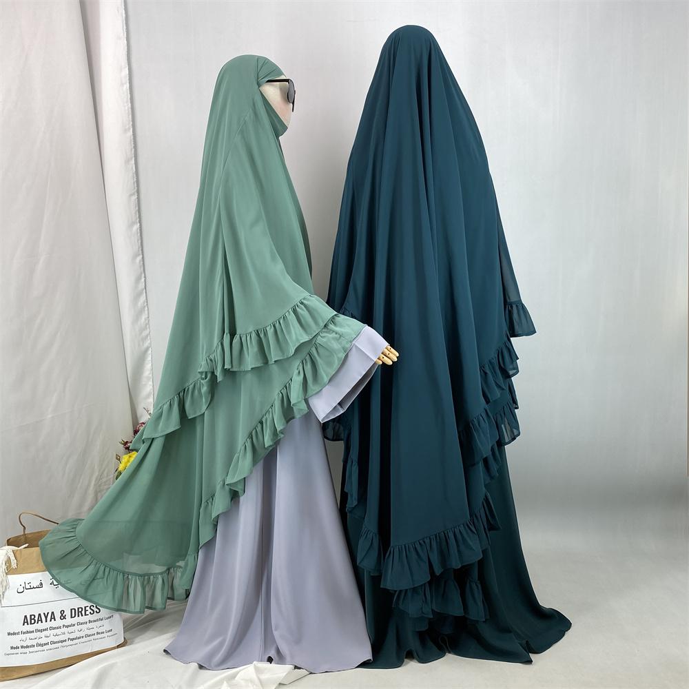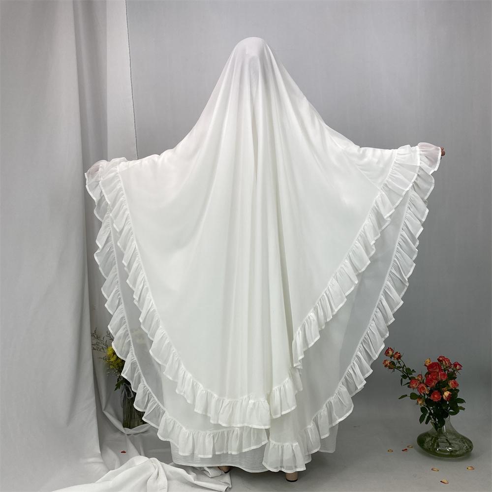 2359# Elegant Extra Long Two Layers Chiffon Khimar Hijab With End Ruffles Multi Colors For Muslim Women Daily Prayer 2025 Ramadan