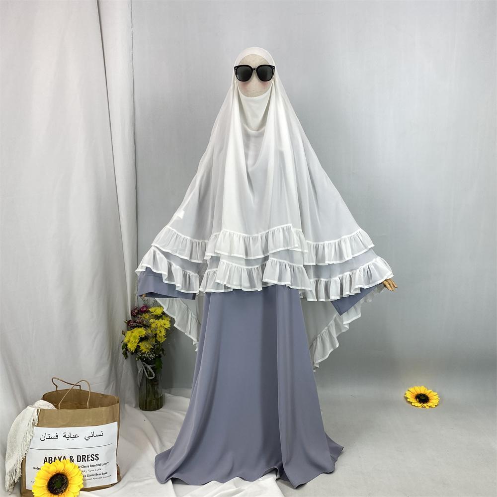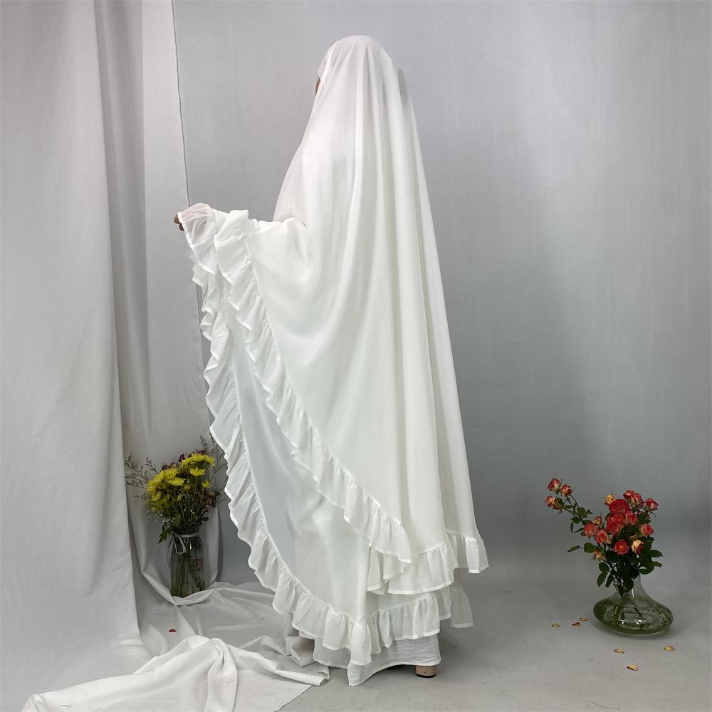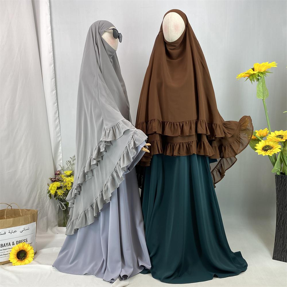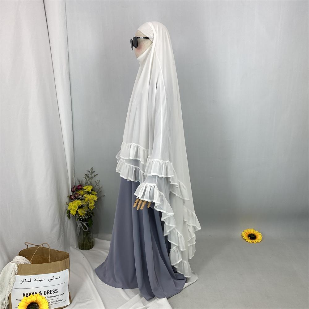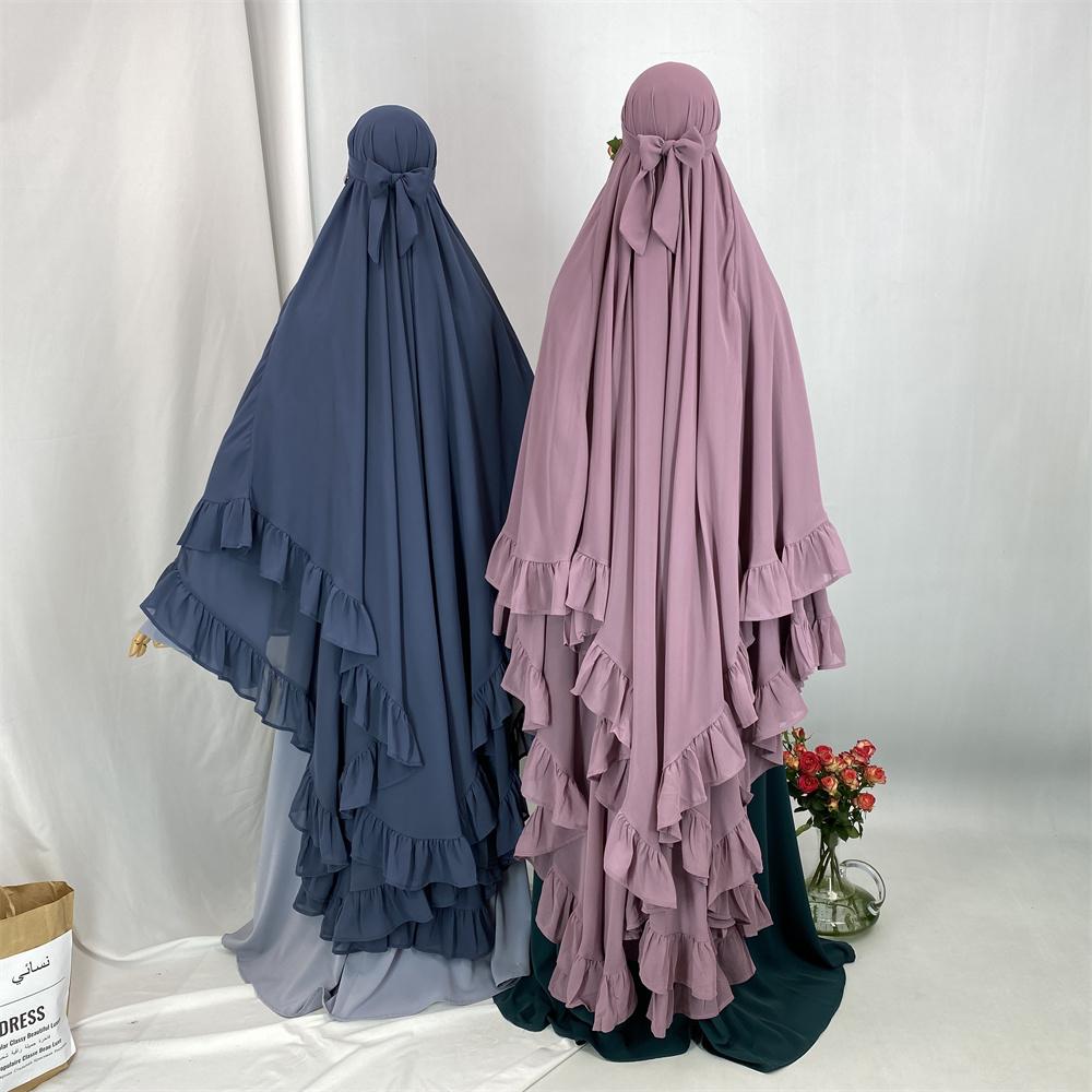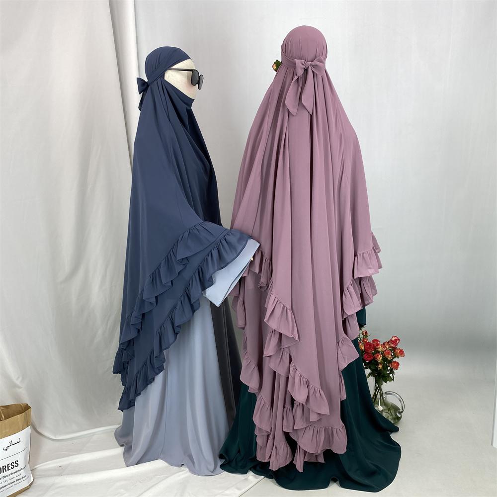 2359# Elegant Extra Long Two Layers Chiffon Khimar Hijab With End Ruffles Multi Colors For Muslim Women Daily Prayer 2025 Ramadan