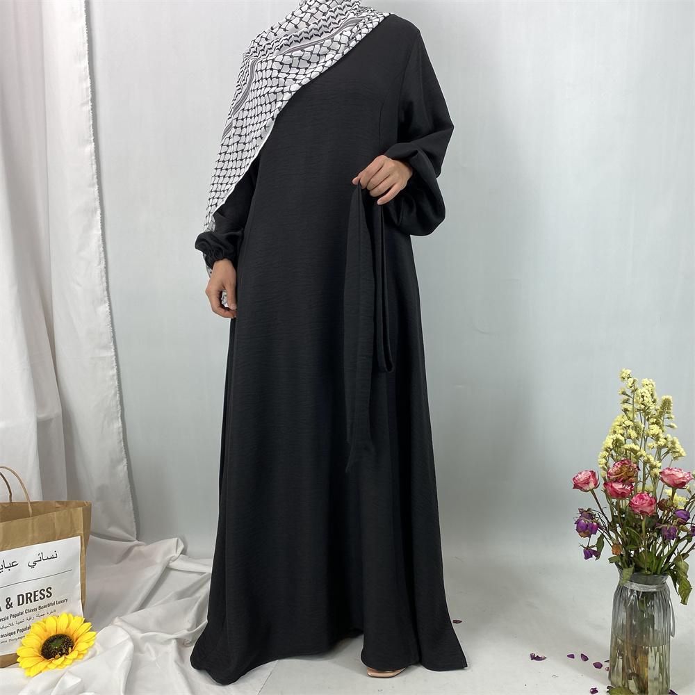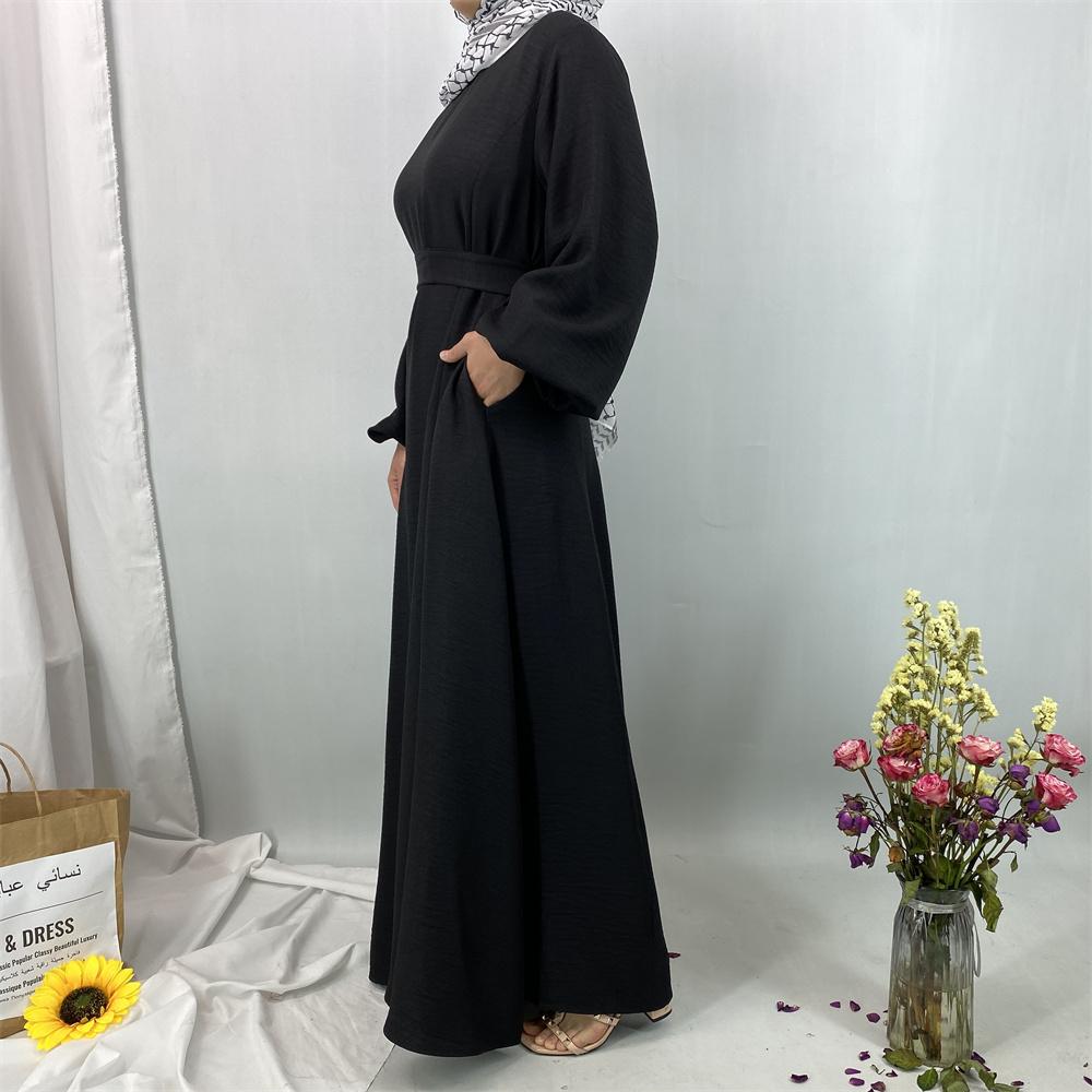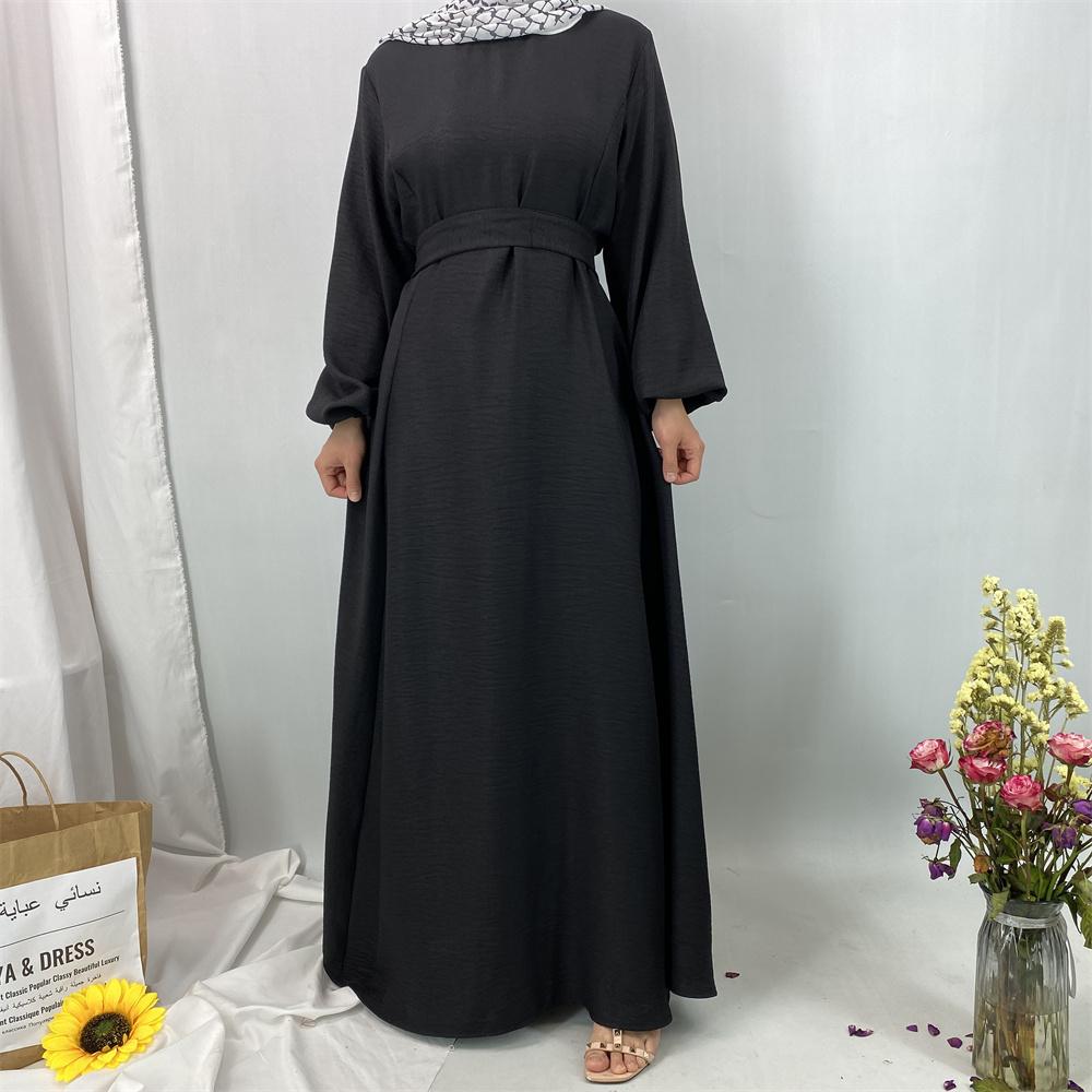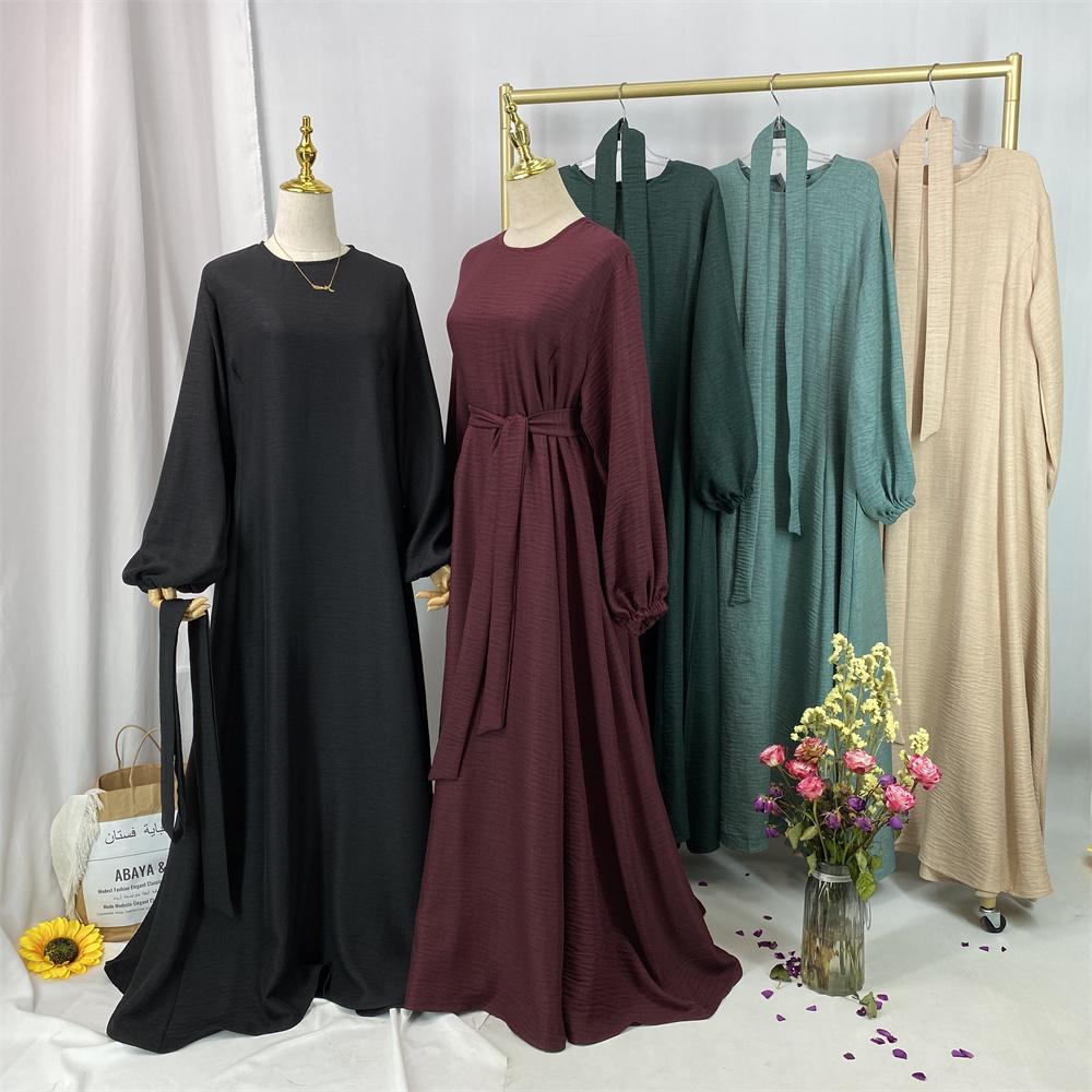 6840# Stunning Modest Muslim Dress for Every Occasion With Belt Solid Color HijabFashion ModestStyle Crepe material