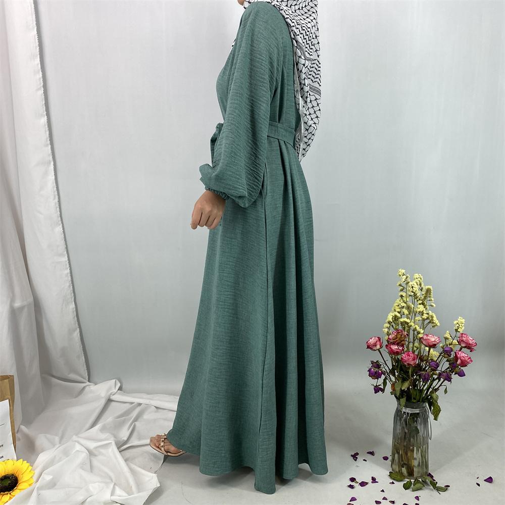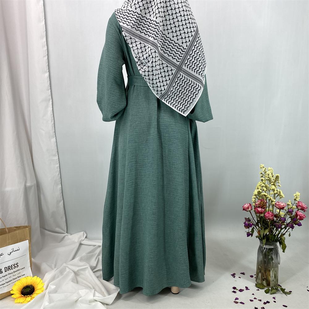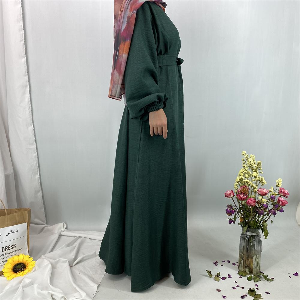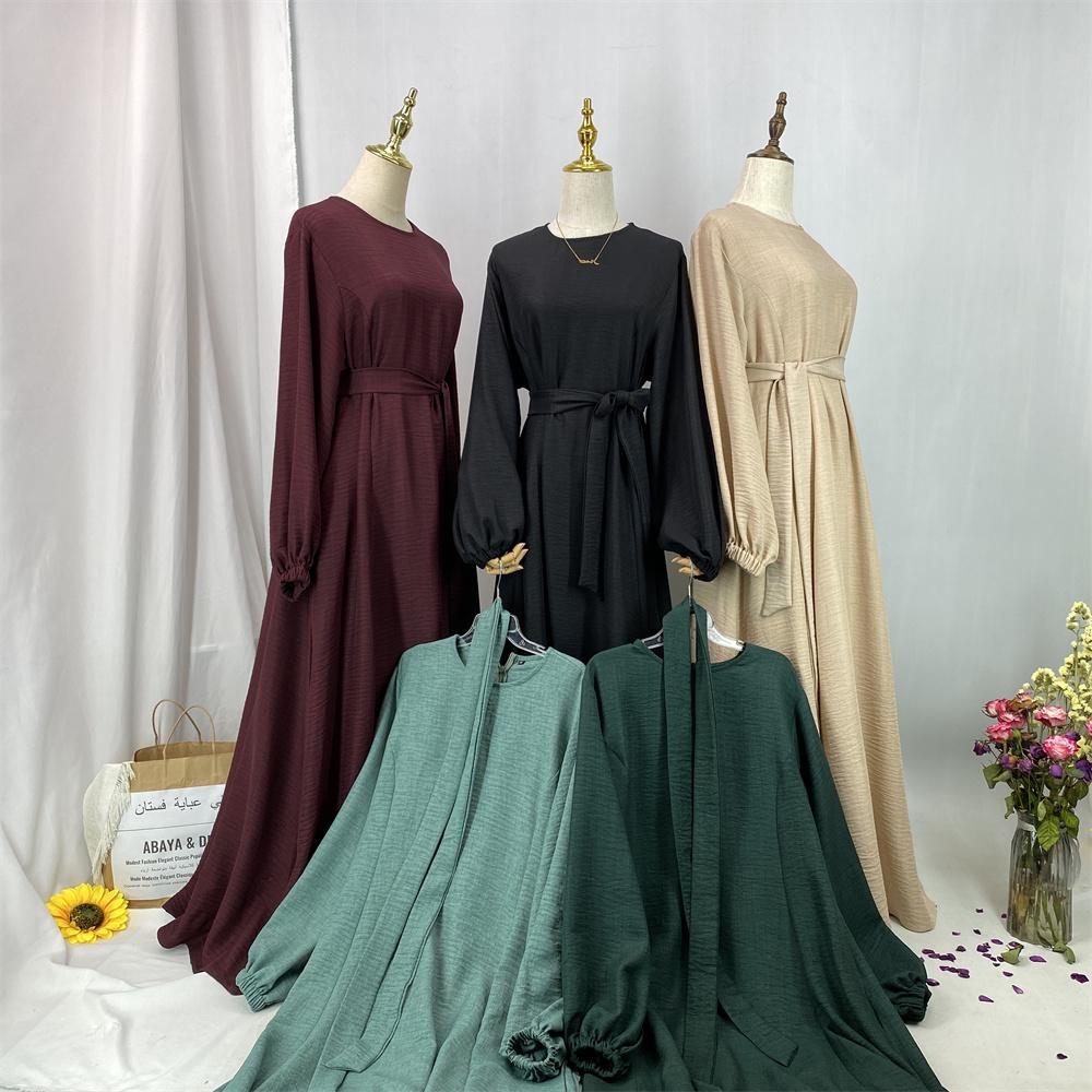 6840# Stunning Modest Muslim Dress for Every Occasion With Belt Solid Color HijabFashion ModestStyle Crepe material
