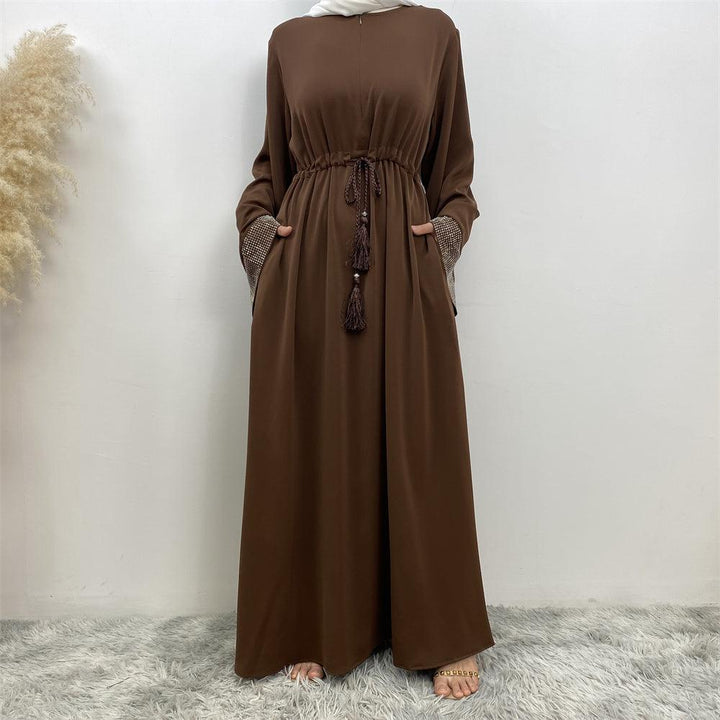 6758# Eid High Quality Woman Fahsion Loose sleeves With beading Muslim Dress