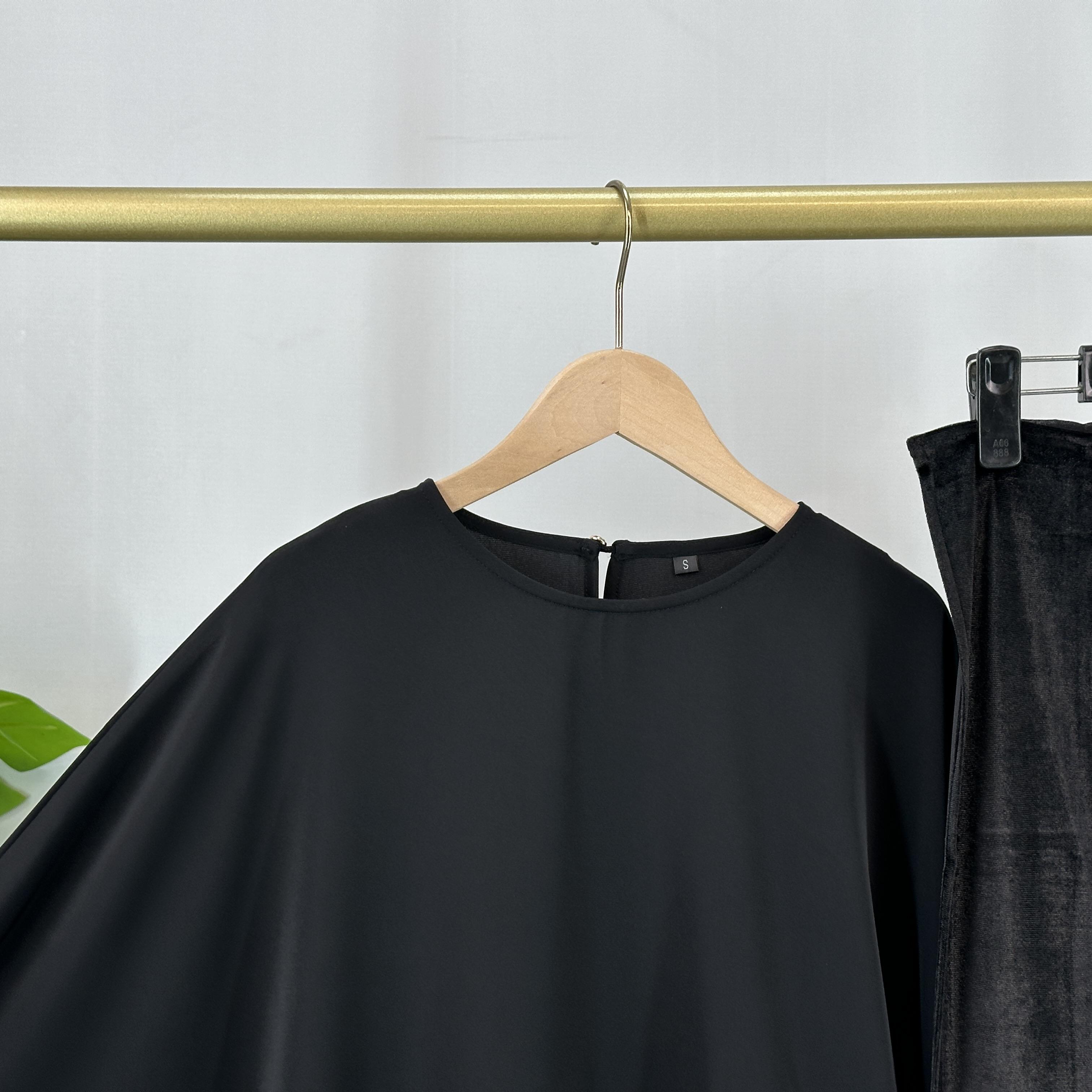 Discover the 6889# Modest Luxe Velvet Detailing Muslim Dress + Hijab Set. This warm and modest batwing sleeve dress is perfect for those seeking style and modesty. The set includes a beautifully designed dress paired with a matching hijab, ensuring a cohesive look. Ideal for various occasions, this dress combines elegance with practicality.