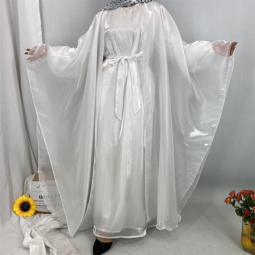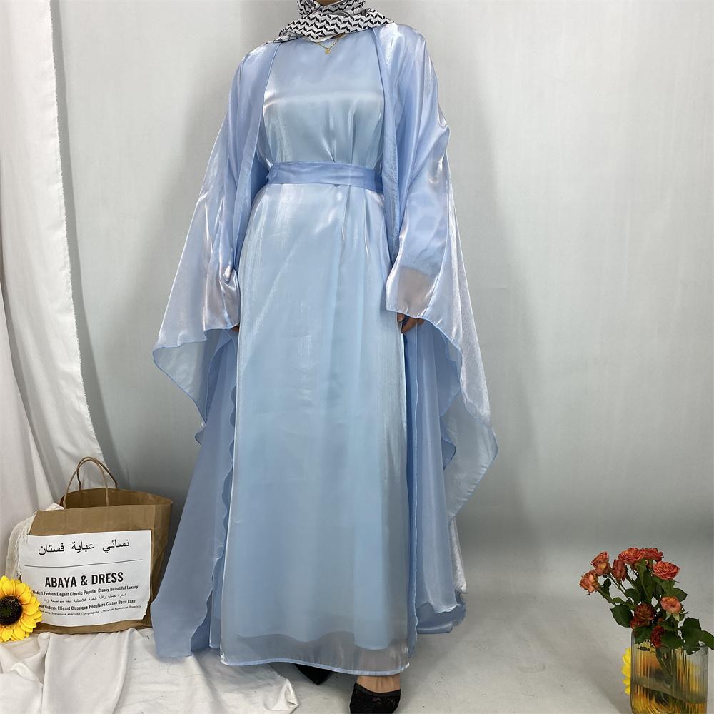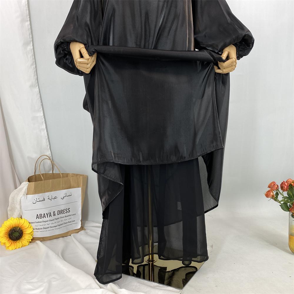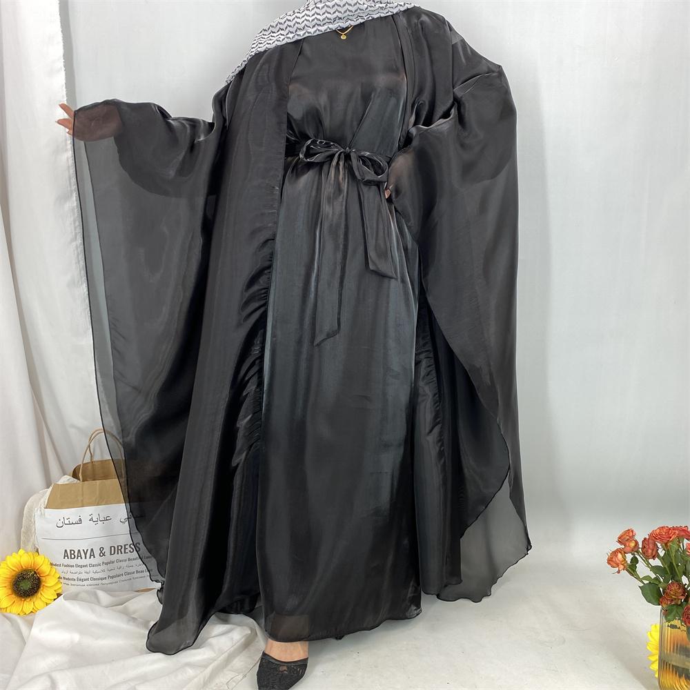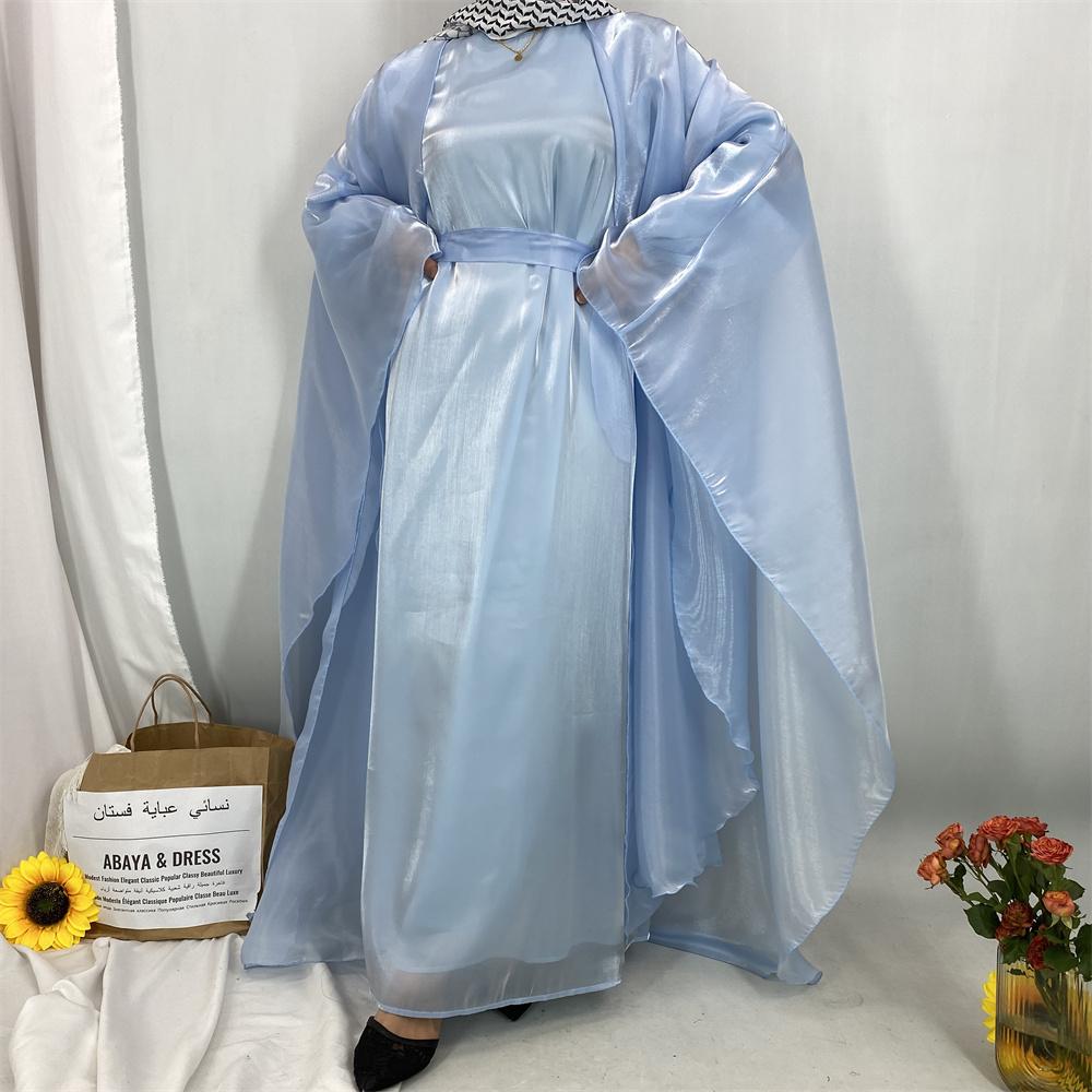 1468+6855# 2PCS Shimmering Batwing Sleeve Silk Abaya with Inner - 4 Colors & 5 Sizes | Lightweight, Versatile Modest Fashion for DIY Daily Styling