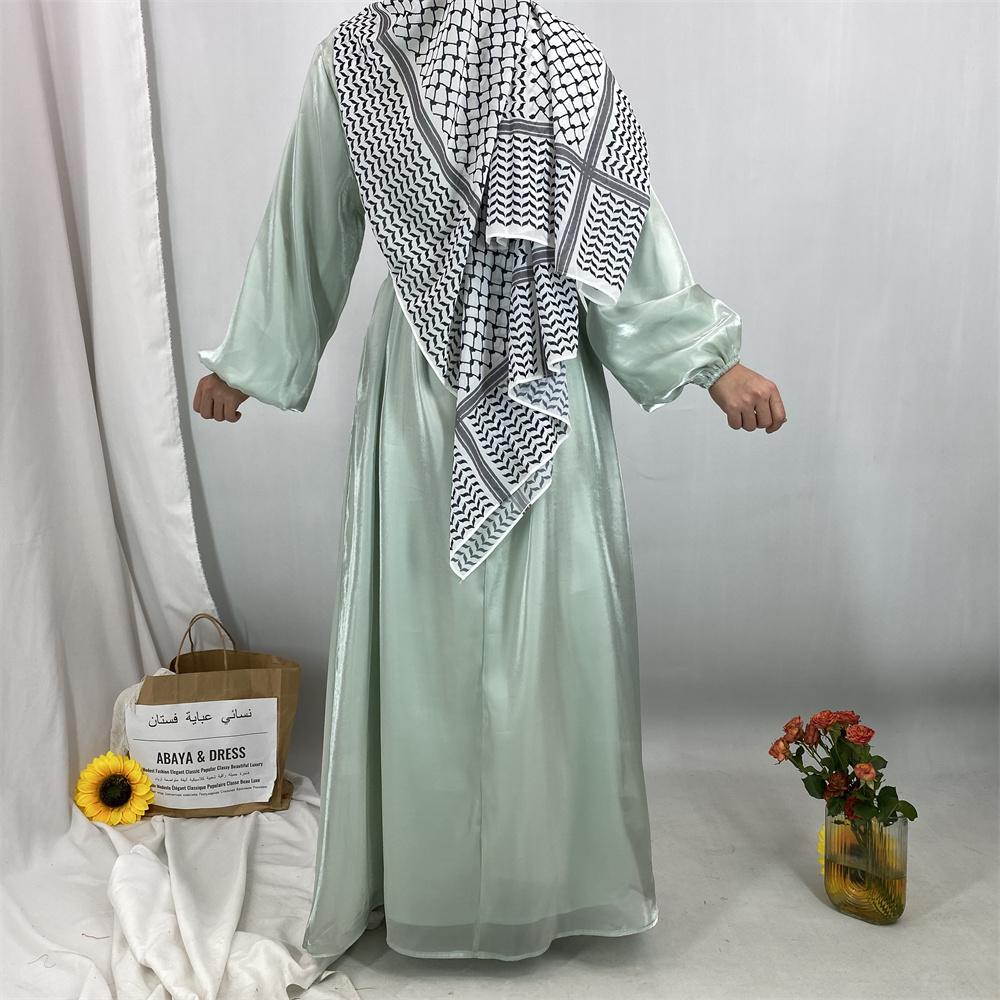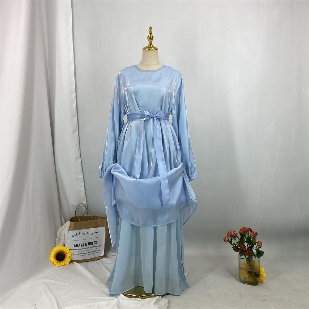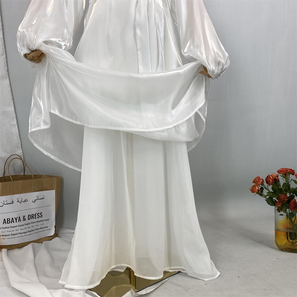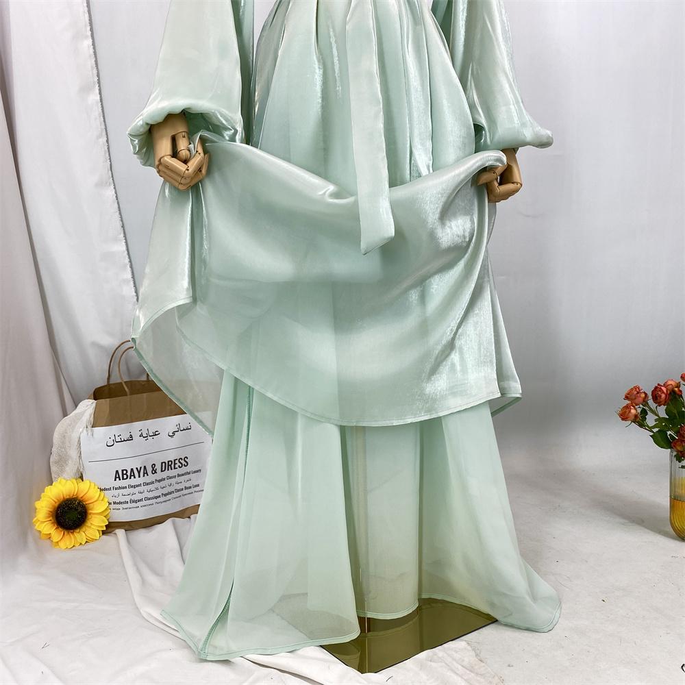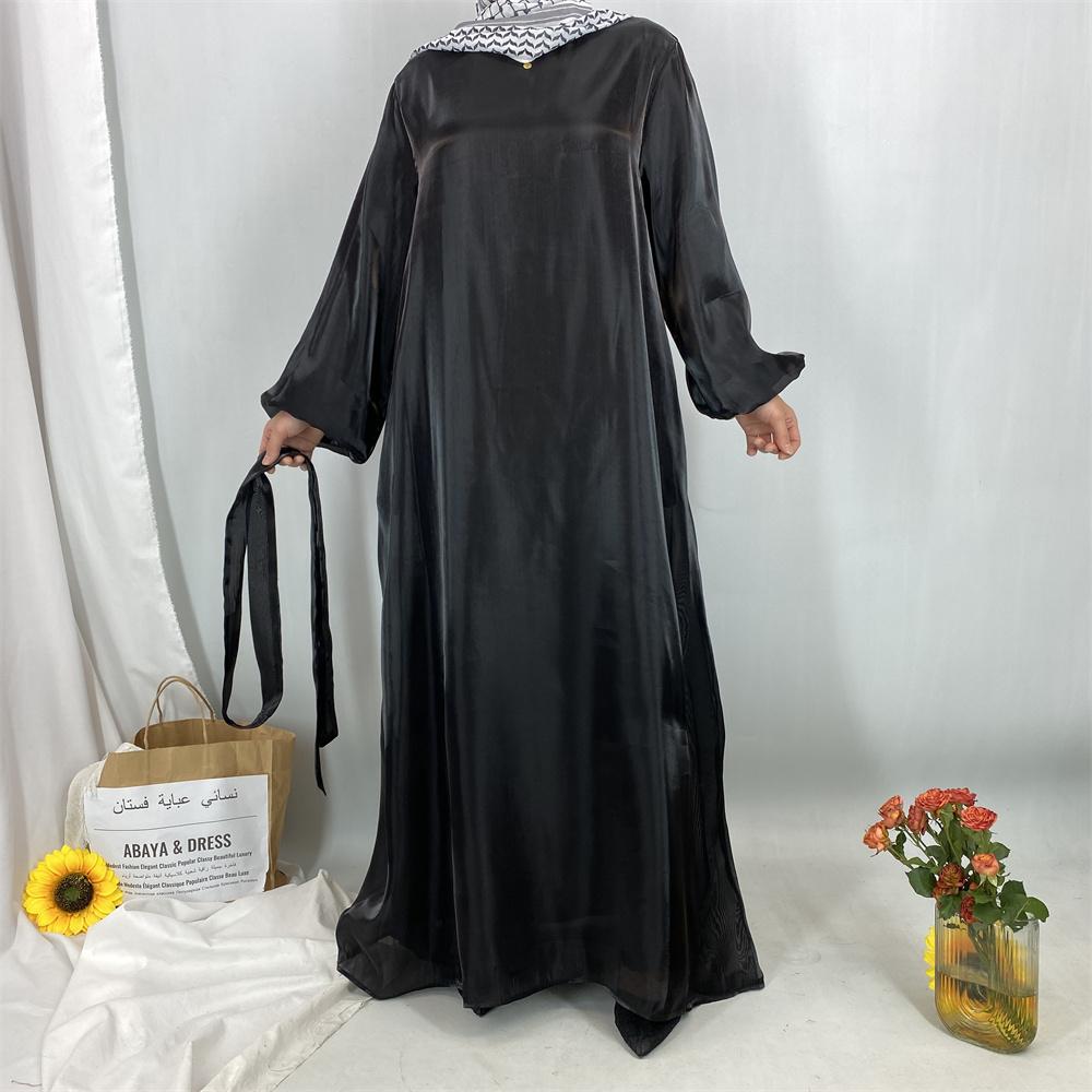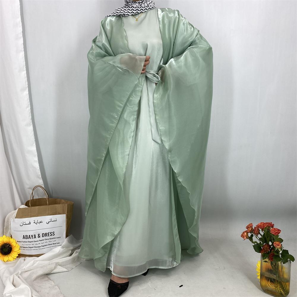 1468+6855# 2PCS Shimmering Batwing Sleeve Silk Abaya with Inner - 4 Colors & 5 Sizes | Lightweight, Versatile Modest Fashion for DIY Daily Styling
