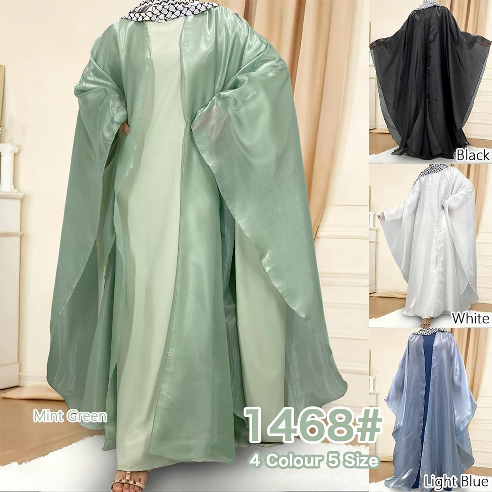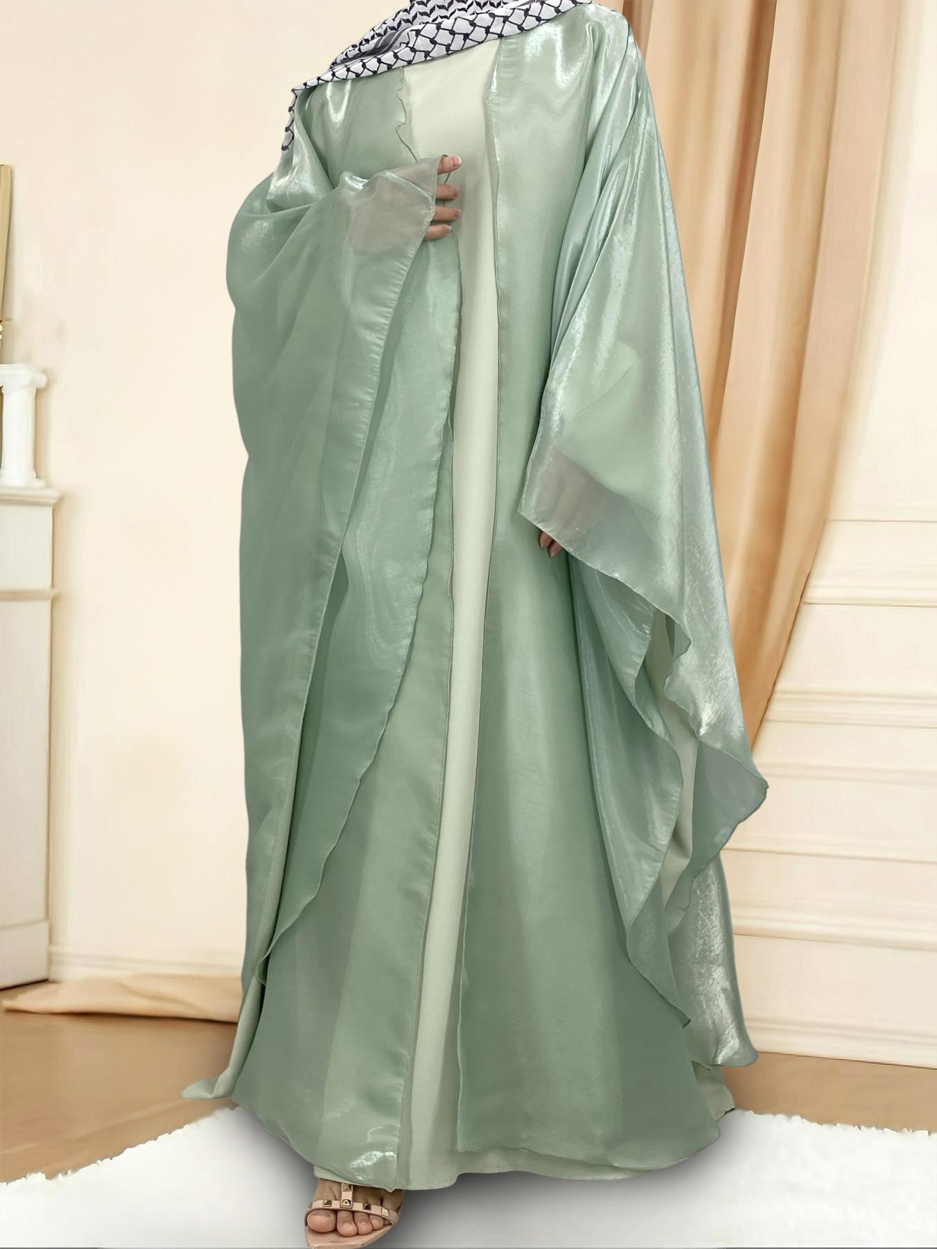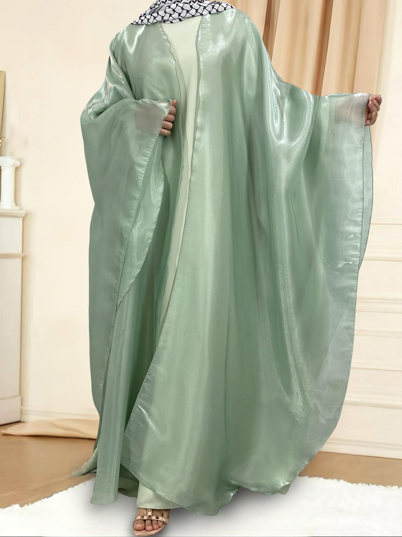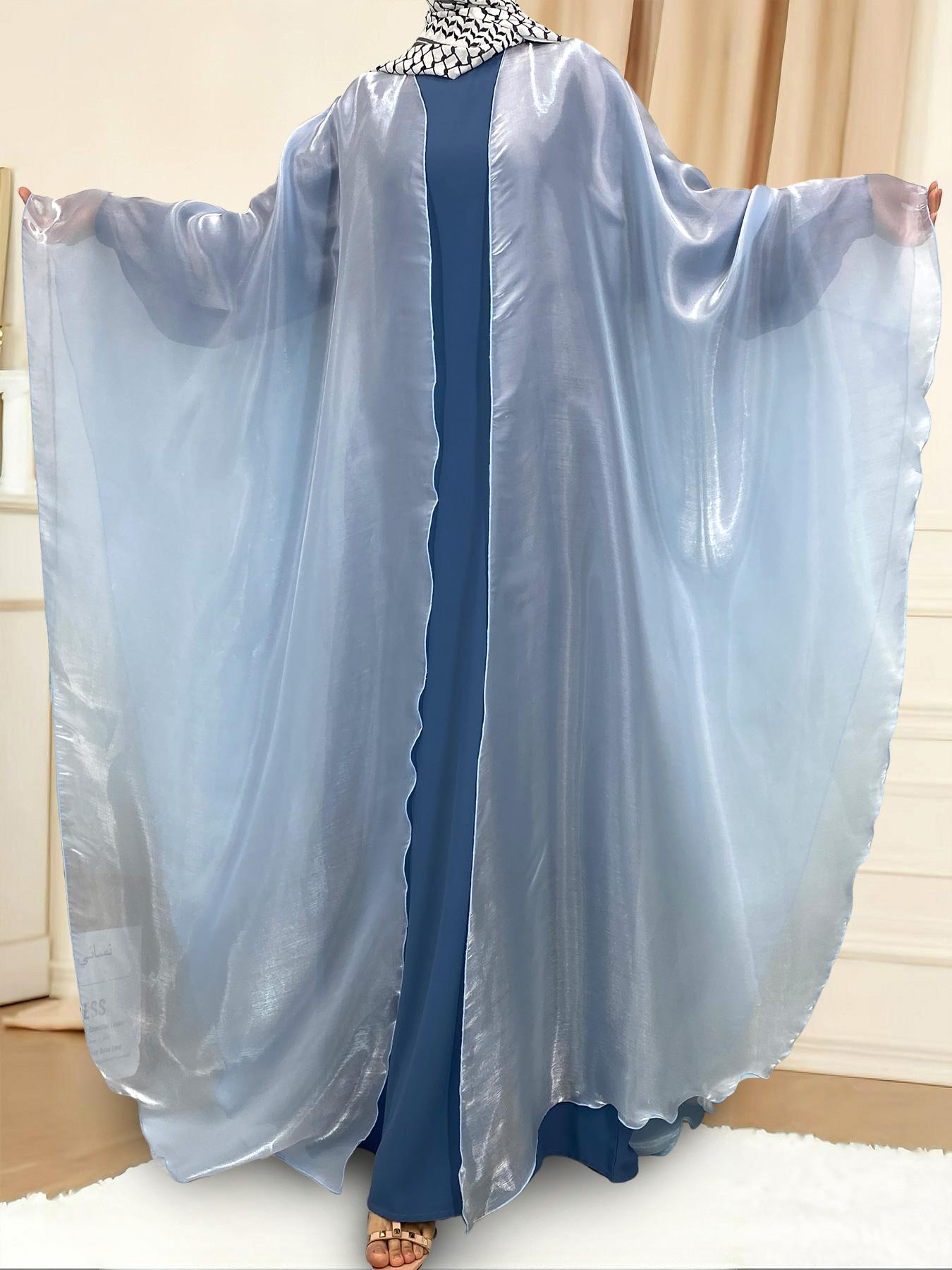 1468# Shimmering Batwing Sleeve Silk Shawl Abaya - 4 Colors & 5 Sizes | Lightweight, Versatile Modest Fashion for DIY Daily Styling (not included Inner dress)