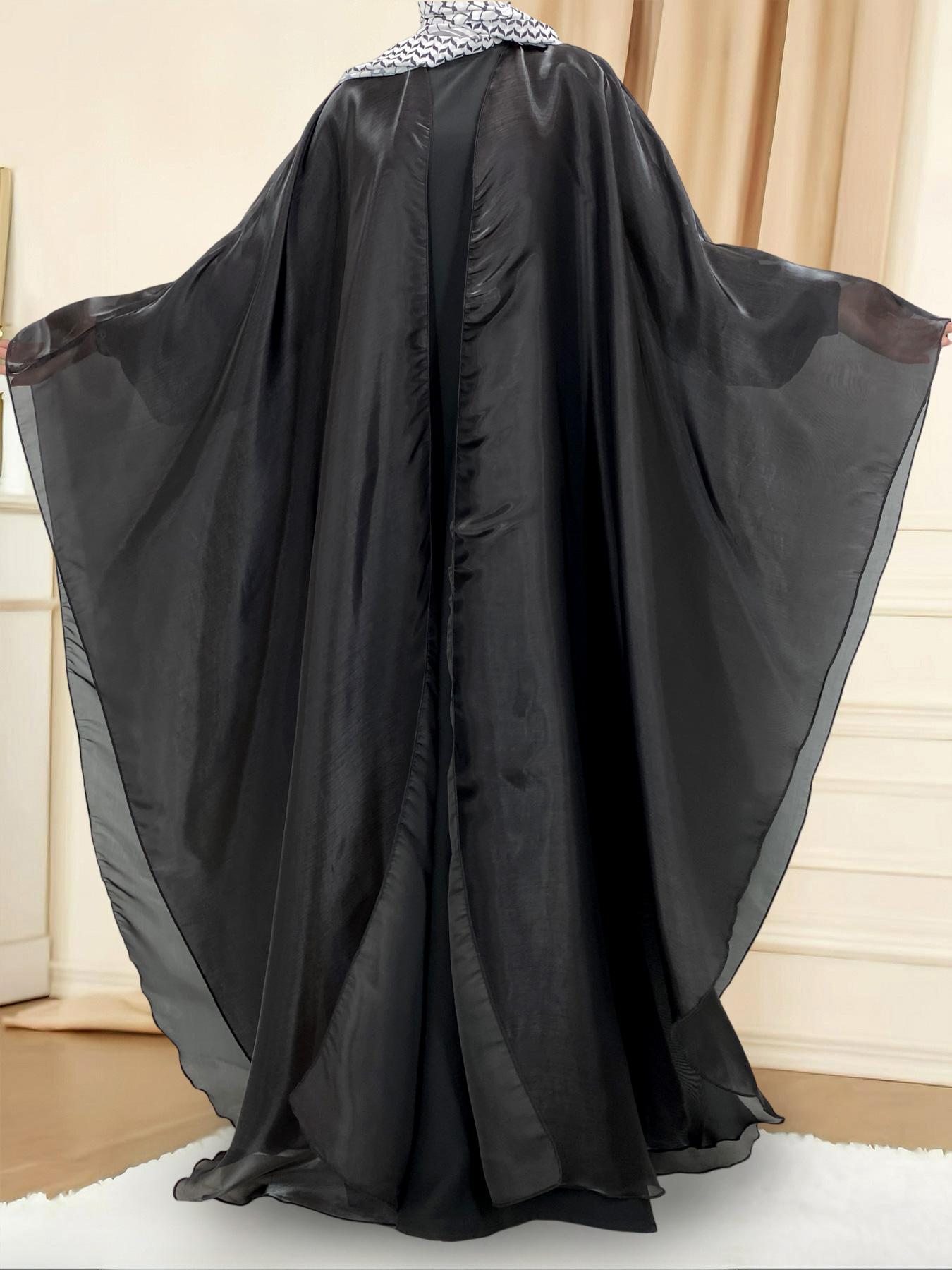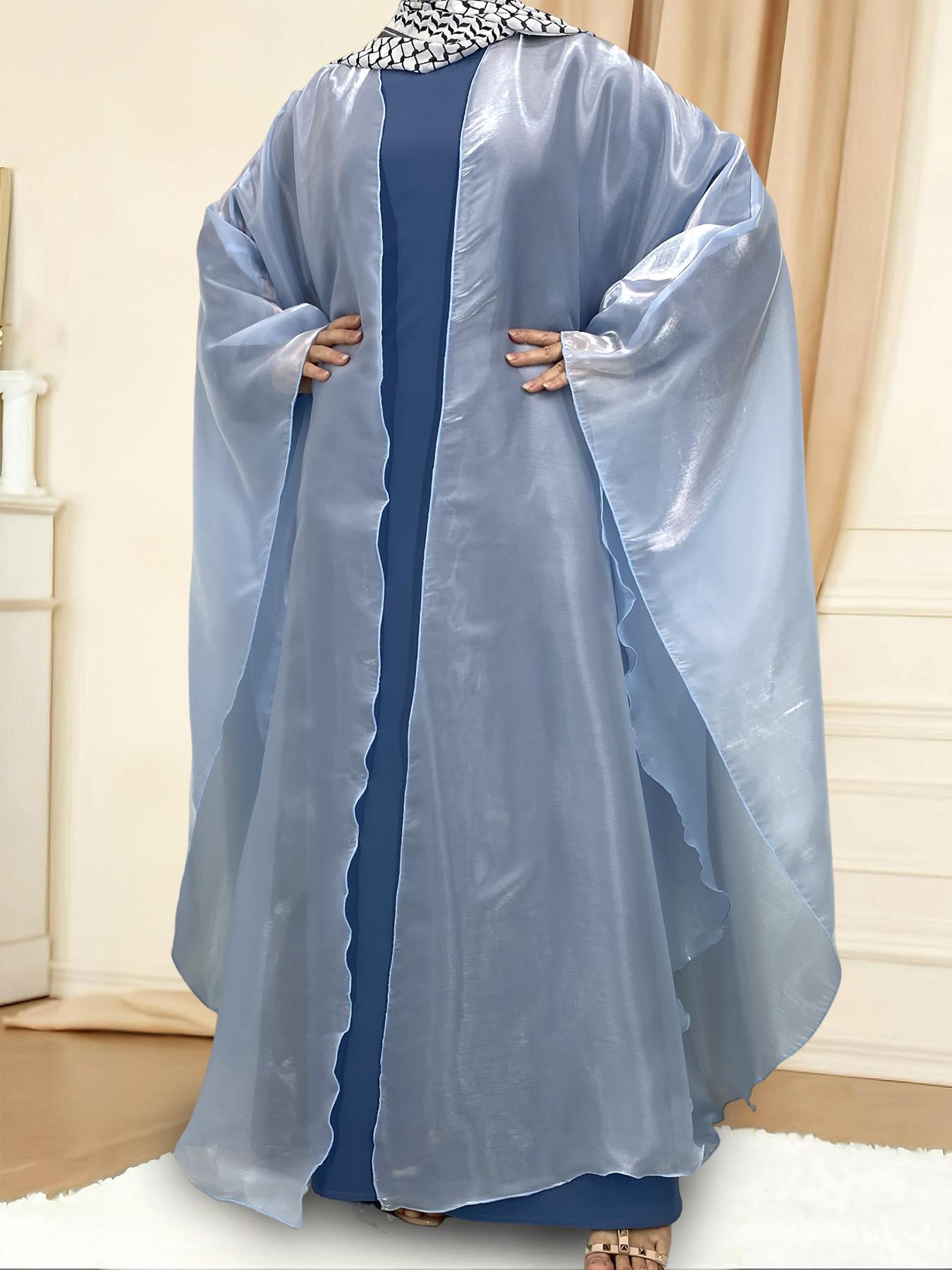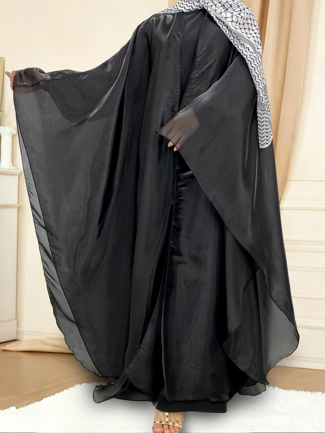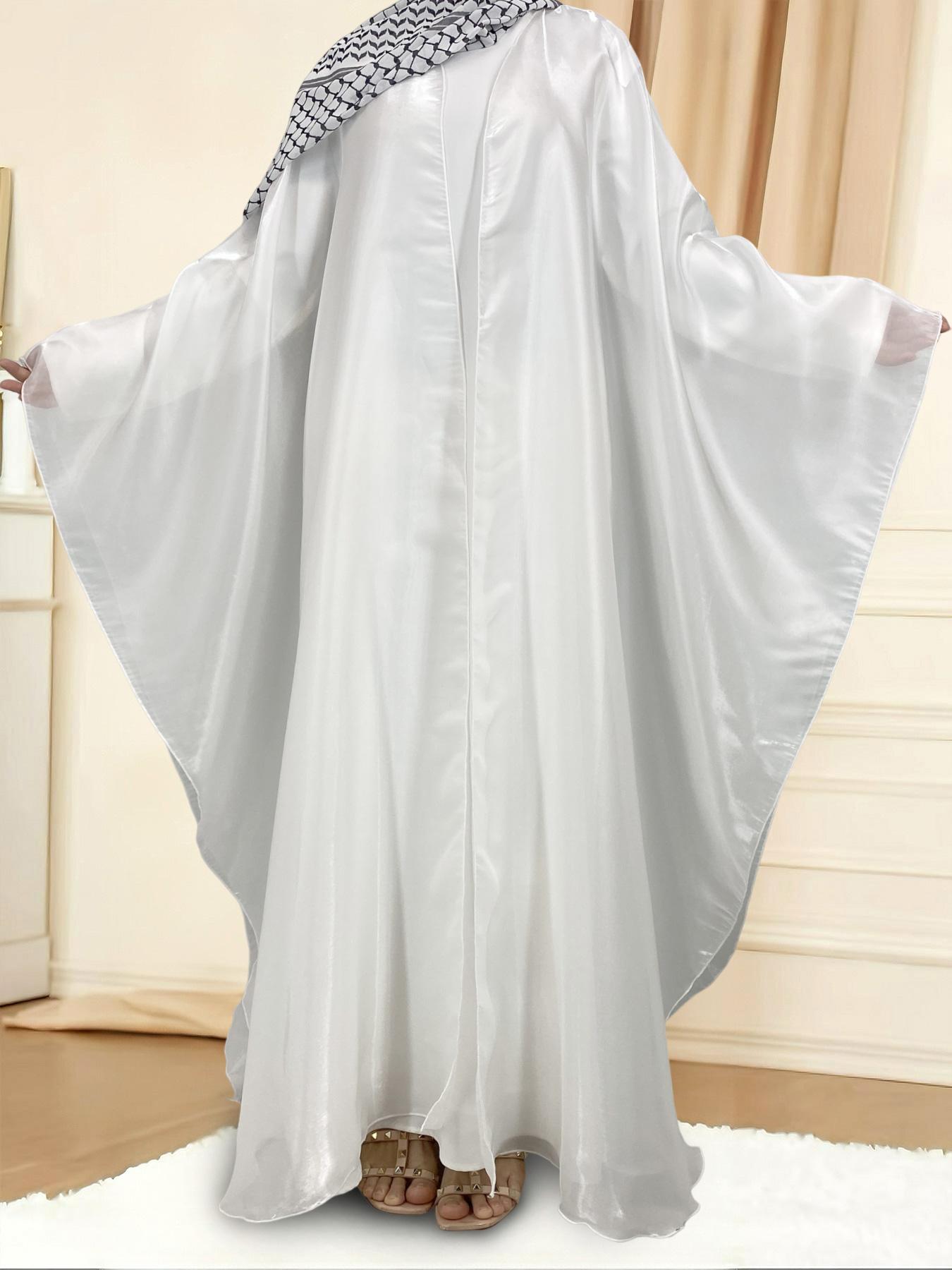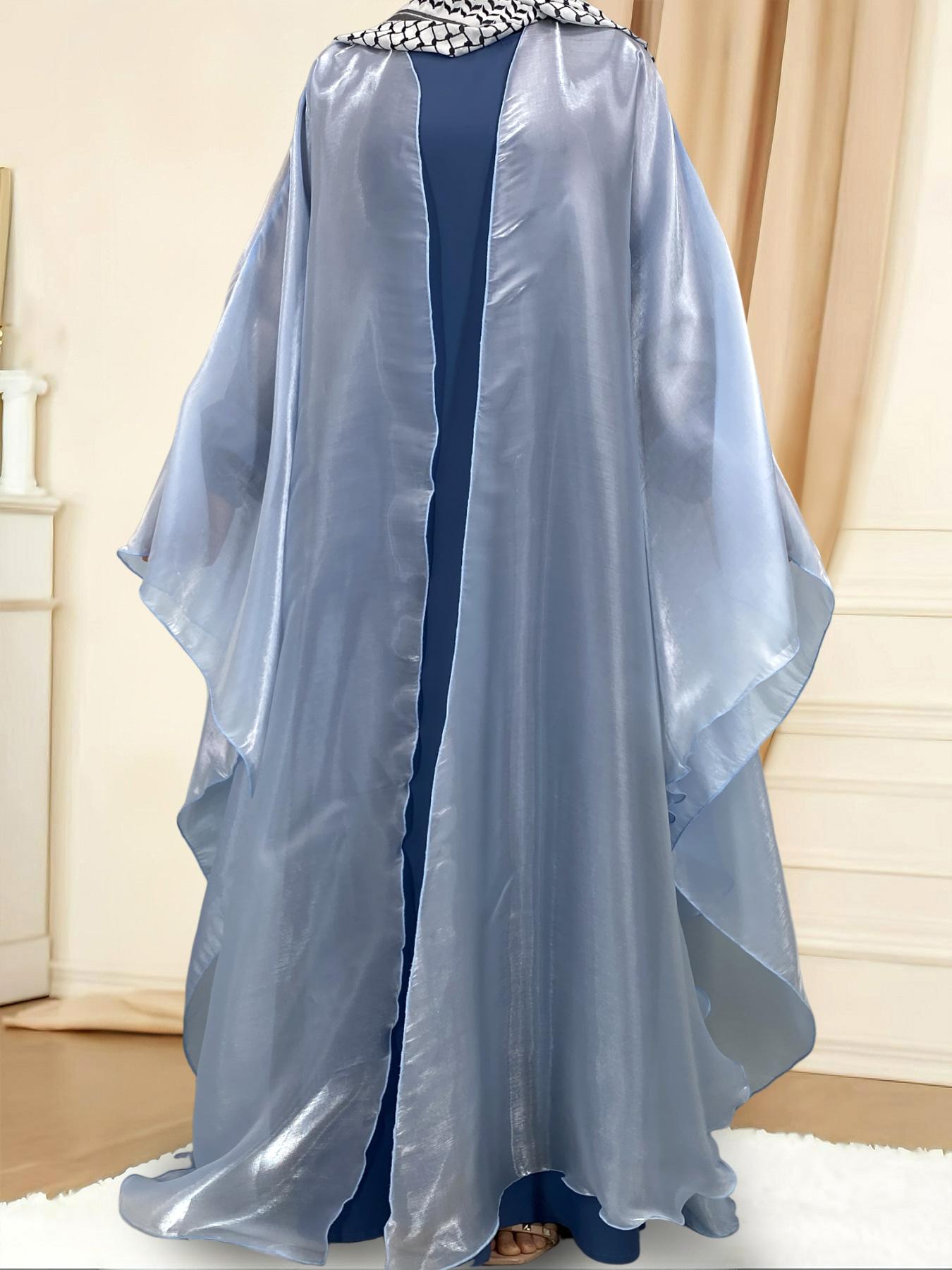 1468# Shimmering Batwing Sleeve Silk Shawl Abaya - 4 Colors & 5 Sizes | Lightweight, Versatile Modest Fashion for DIY Daily Styling (not included Inner dress)