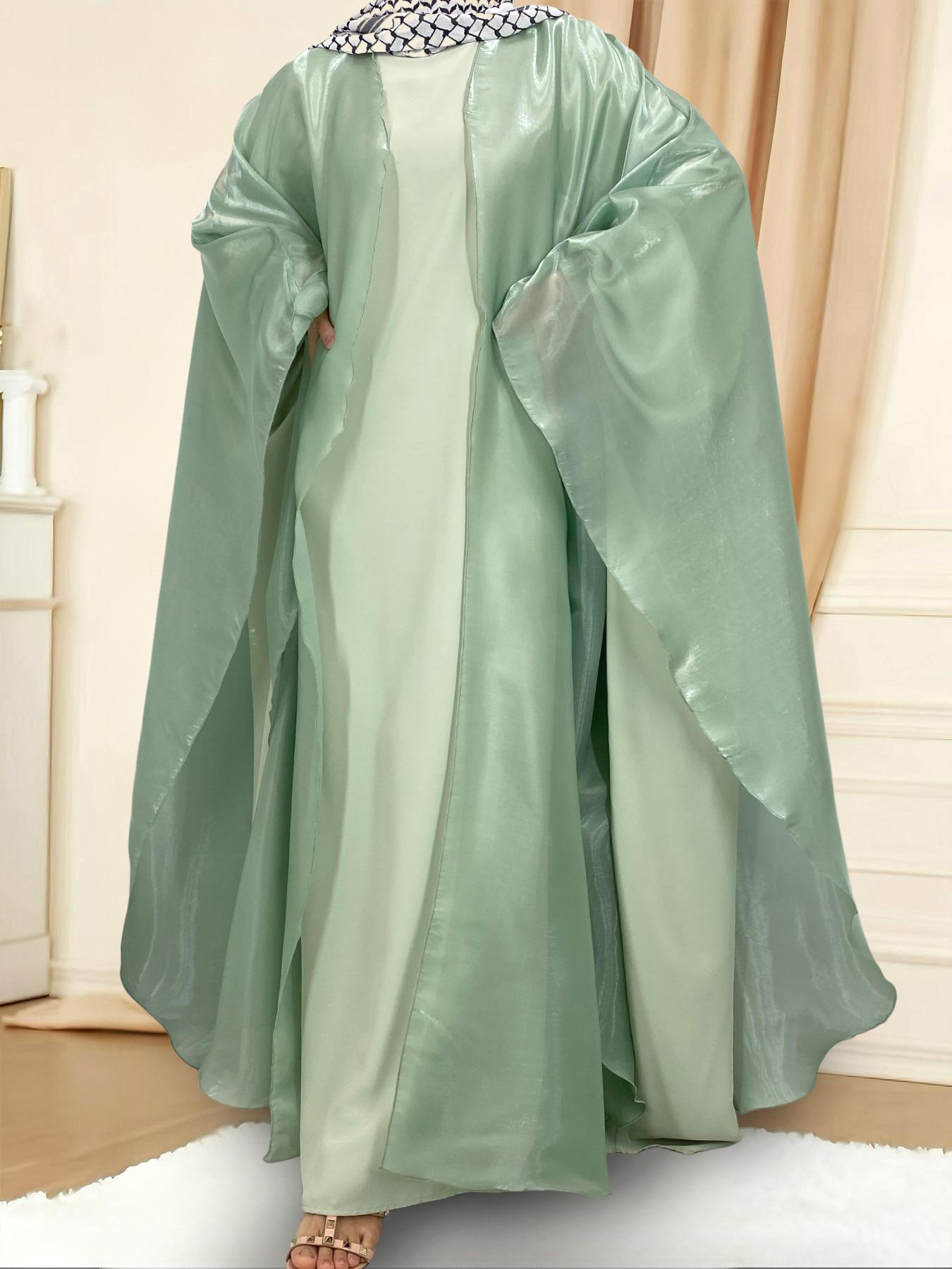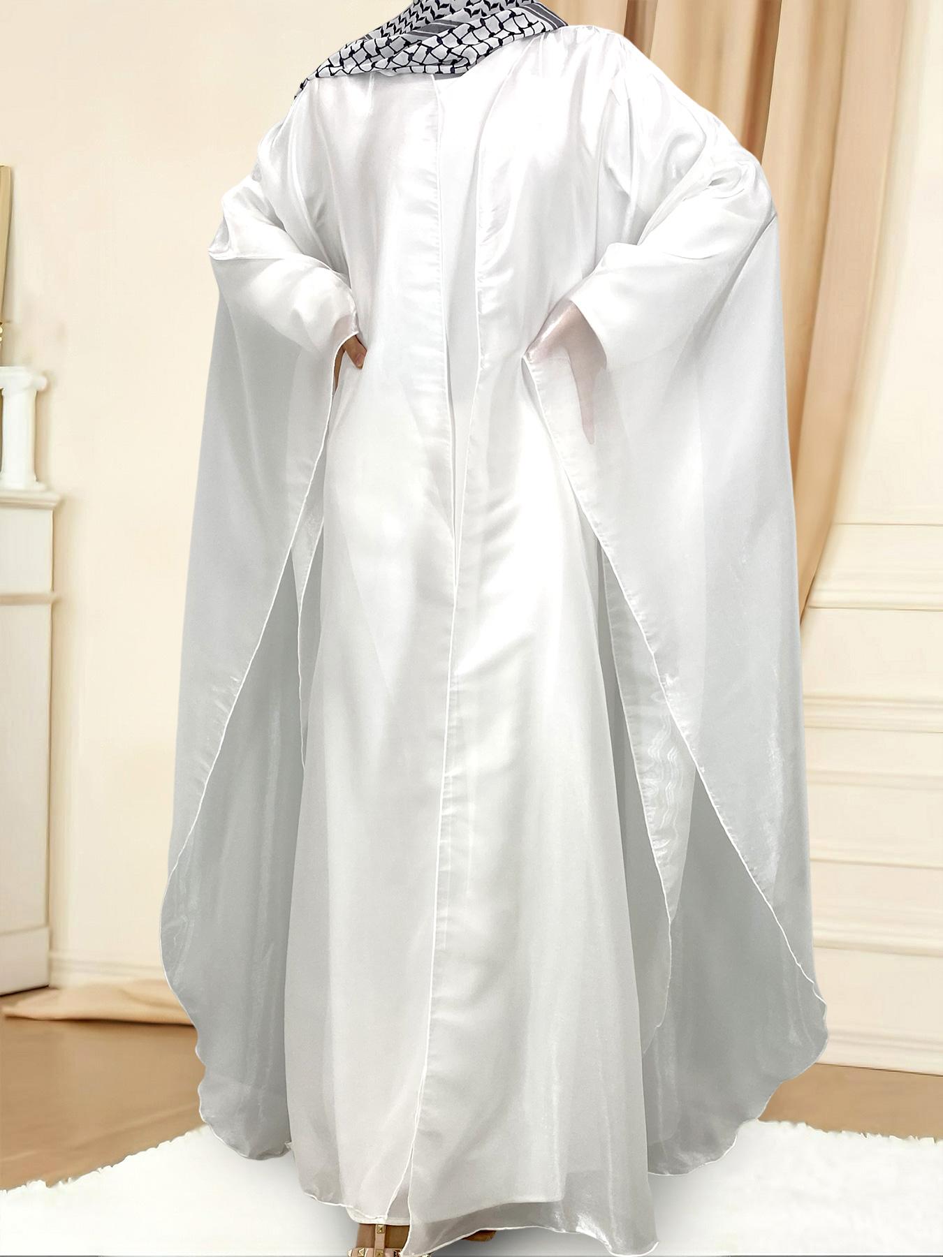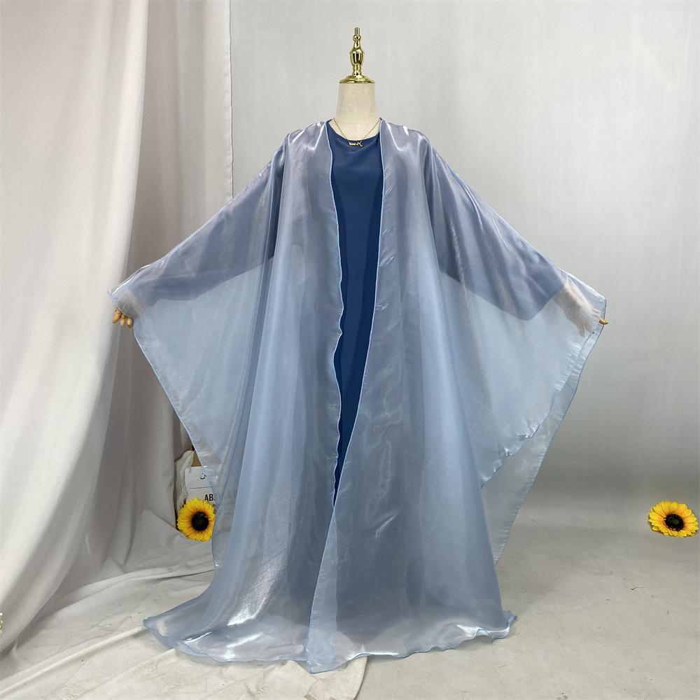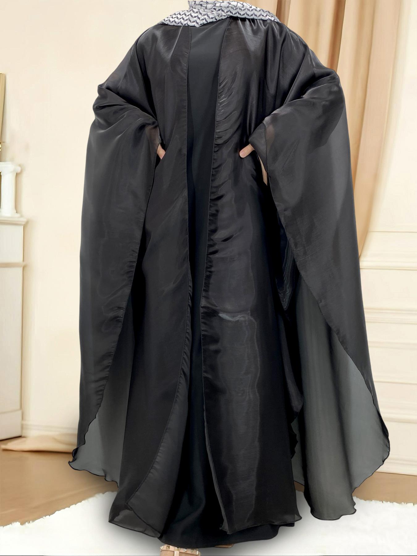 1468# Shimmering Batwing Sleeve Silk Shawl Abaya - 4 Colors & 5 Sizes | Lightweight, Versatile Modest Fashion for DIY Daily Styling (not included Inner dress)